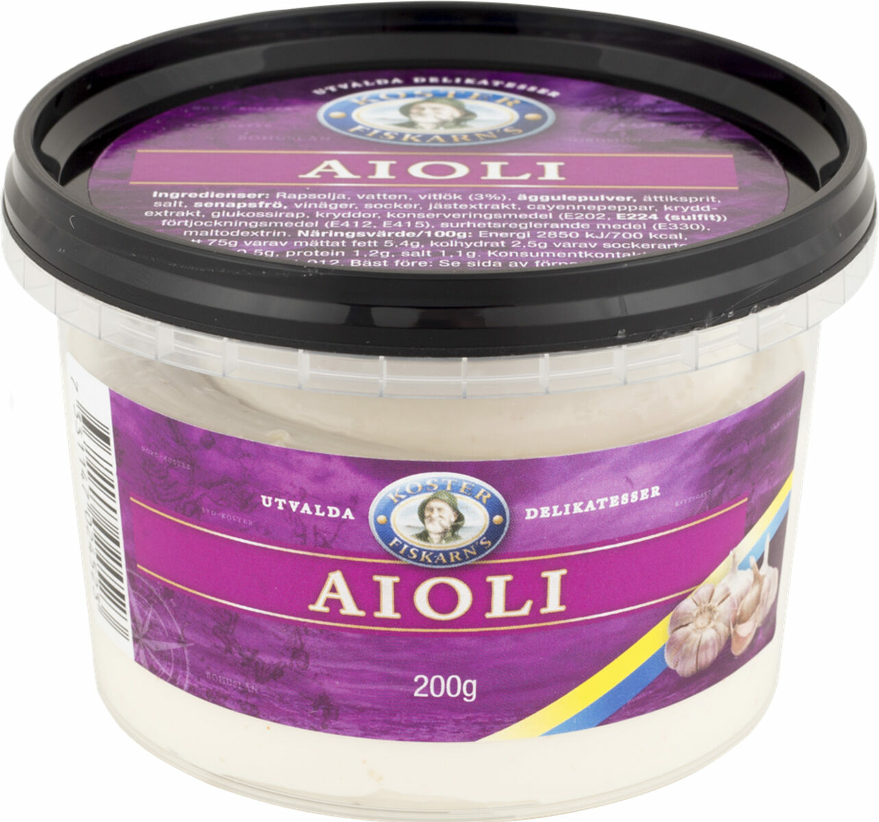 Rapsolja, vatten, vitlök (3%), ÄGGULEPULVER, ättiksprit, salt, SENAPSFRÖ, vinäger, socker, jästextrakt, cayennepeppar, kryddextrakt, glukossirap, kryddor, konserveringsmedel (E202, E224 (SULFIT)), förtjockningsmedel (E412, E415), surhetsreglerande medel (E330), maltodextrin