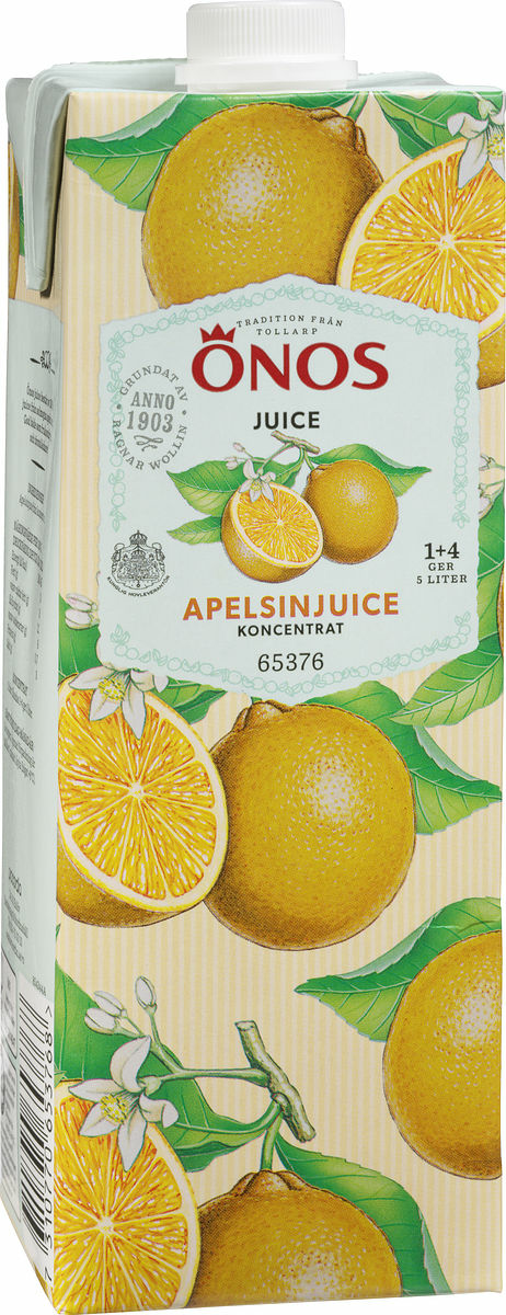 Apelsinjuice från solmogna apelsiner är god och fyllig. 8x1 liter. Spädes 1+4 och ger 5 L färdig juice. Tillverkad i Sverige.