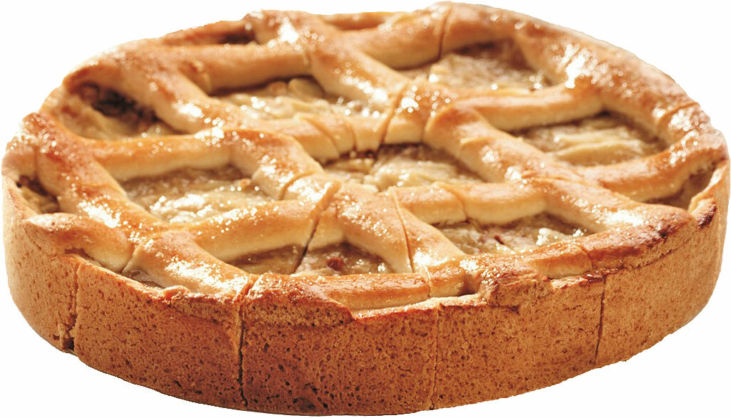 Traditionell äppelkaka gjord på mördeg och fylld med äpplen och russin. Saftig äppelsmak inbakad under det klassiska rutmönstret.