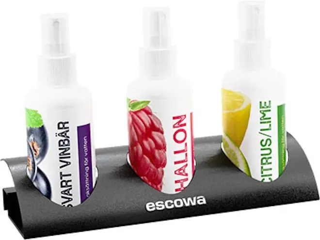 Vårt aromaställ är ett utomordentligt snyggt sätt att förvara och presentera aromaflaskorna på. Stället rymmer tre flaskor och kommer med Escowas logotyp i framkant. Tillverkat i metall med snygg finish i hammarlack.