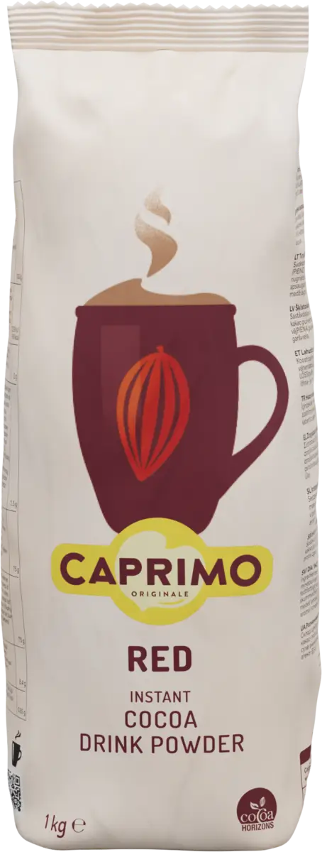 With its creamy mouth feel and 16% cocoa, Caprimo Red is the ultimate drink to satisfy the most demanding chocolate lovers! Its excellent machine functionality will assure that you are worry free and its great taste that you satisfy the most difficult of adult chocolate drink consumers. This excellent cocoa drink contains sugar, whey powder, 16% cocoa powder and skimmed milk powder.