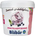 Krämig blåbärsglass gjord på svensk färsk grädde med smakfull blåbärssylt i praktisk portionsförpackning. Utan tillsatt socker. Sötad med björksocker och steviolglykosider som utvinns ur växten stevia. Alltid tillverkad i Slöinge, Halland. Vårt familjeföretag ligger i Slöinge, en naturskön del av södra Halland. Det är här våra kor betar. Det är här vi utvecklar och tillverkar vår glass. Det är här vår själ och historia finns. Alltid med smak och njutning i fokus. I vårt glassmejeri utvecklar och tillverkar vi vår glass med färsk grädde från halländska gårdar, bl a vår egen Berte Gård. Vi använder företrädesvis närproducerade svenska råvaror av högsta kvalité. All vår glass är helt fri från palmolja. Det är med kärlek för hantverket och omtanke om djur och natur som vi tillverkar all vår gräddglass i Sverige.