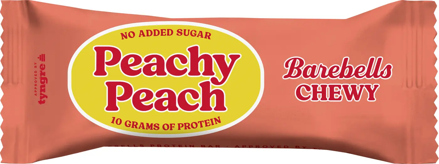 Seg, fluffig och oemotståndligt god! Peachy Peach är en smidig snack-bar utan tillsatt socker, täckt av ett tunt lager krämig vit choklad. Insidan? En mjuk och smakrik upplevelse som påminner om söta persikogodisar – en explosion av solsken i varje tugga!