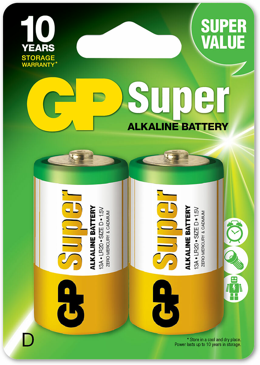 GP Super Alkaline är ett perfekt standardbatteri, lämpligt för de flesta produkter med låg till medelhög strömförbrukning.