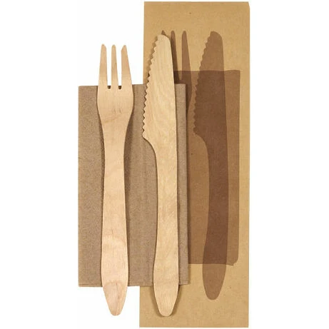 Kniv, gaffel och servett.