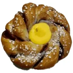 VETEMJÖL, vaniljkräm (vatten, socker, KÄRNMJÖLKSPULVER, vegetabilisk fett (kokos), modifierad stärkelse E1442, konserveringsmedel E202, salt, vaniljarom (arom, vaniljextrakt, naturlig arom(vanilj),färgämne (E160a, E101)), socker, vatten, vetebrödsmargarin (vegetabilisk olja (palm SG, raps), vatten, emulgeringsmedel E471, salt, naturlig arom, surhetsreglerande medel E330), jäst, modifierad stärkelse, MJÖLKPROTEINER, äpplebitar, kardemumma, blåbär 0,53%, salt, surhetsreglerande medel E330, naturlig arom (blåbär), surhetsreglerande medel E450, emulgeringsmedel (E471, E472e), surhetsreglerande medel E500, rapsolja, konserveringsmedel E202, LAKTOS, mjölbehandlingsmedel E300, naturlig arom (blåbär). Kan innehålla spår av ägg, soja, mandel, hasselnöt, valnöt, sesamfrö.