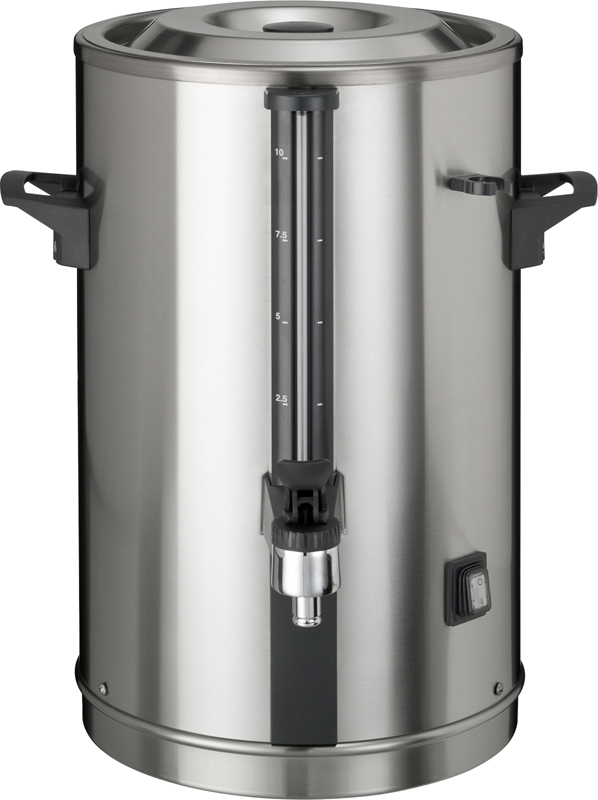 Eluppvärmd, dubbelmantlad behållare med nivåglas, non-drip tappkran, inner- och ytter lock. Fixingset för låsning till bottenplatta. Att användas i kombination med urnbryggare.