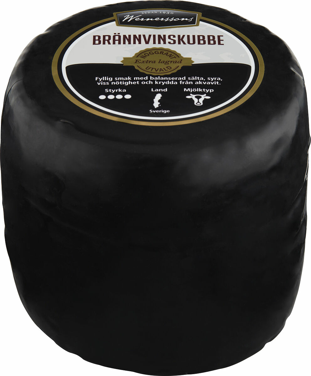 Speciellt utvald svensk lantost. Svartvaxad cylinderformad. Lagrad i minst 10 månader och förädlad med akvavit. Smidig konsistens, grynpipig. Smaken är fyllig med balanserad sälta, syra, viss nötighet och krydda från akvavit.
