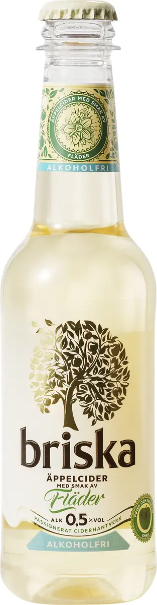 Ingredienser: Kolsyrat vatten, äppeljuice från koncentrat, socker, äppelvin (SULFIT), fläderblomsextrakt, syra (citronsyra), aromer, konserveringsmedel (kaliumsorbat).
