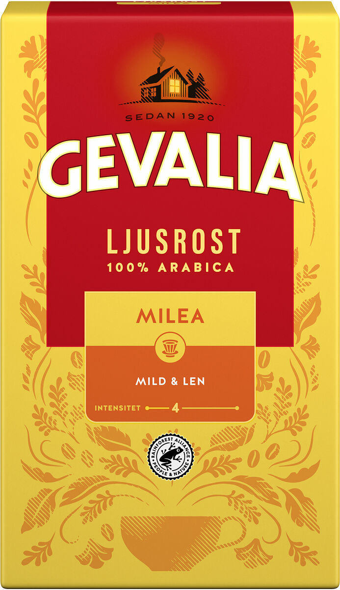Gevalia Milea är ett mellanrostat kaffe som är rikt på smak och arom, men mindre bittert. Det består av naturligt milda kaffebönor från Central- och Sydamerika. Resultatet är ett smakrikt kaffe med samma koffeinhalt som i vanligt kaffe, men med ovanligt mild smak.