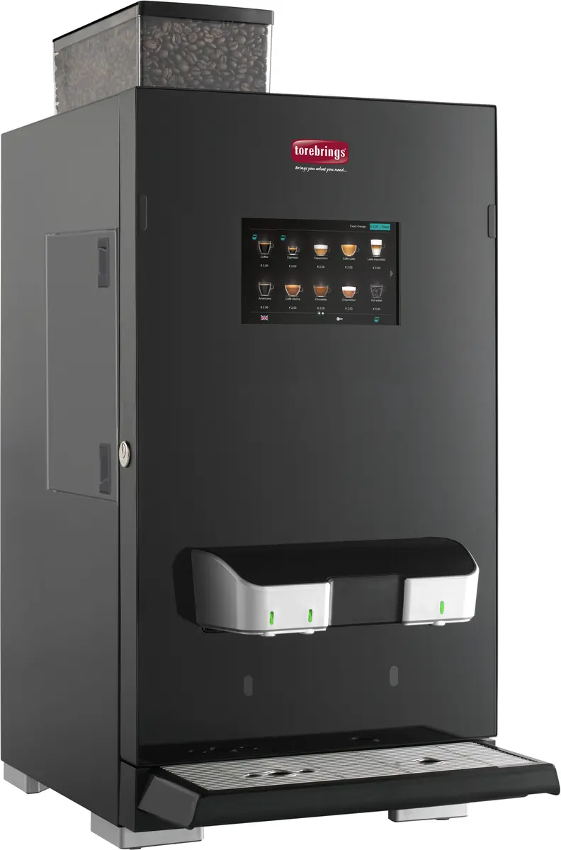 Med sin kompakta storlek kan Cafeja Perto2 Compact placeras nästan var som helst på kontoret. Den färgstarka pekskärmen gör det enkelt för alla att välja en härlig kaffespecialitet eller en krämig chokladdryck med ett enkelt knapptryck. Den anpassningsbara 7-tums displayen kan justeras efter användarens önskemål, till exempel med företagsdesign eller logotyp för ett mer personligt uttryck.