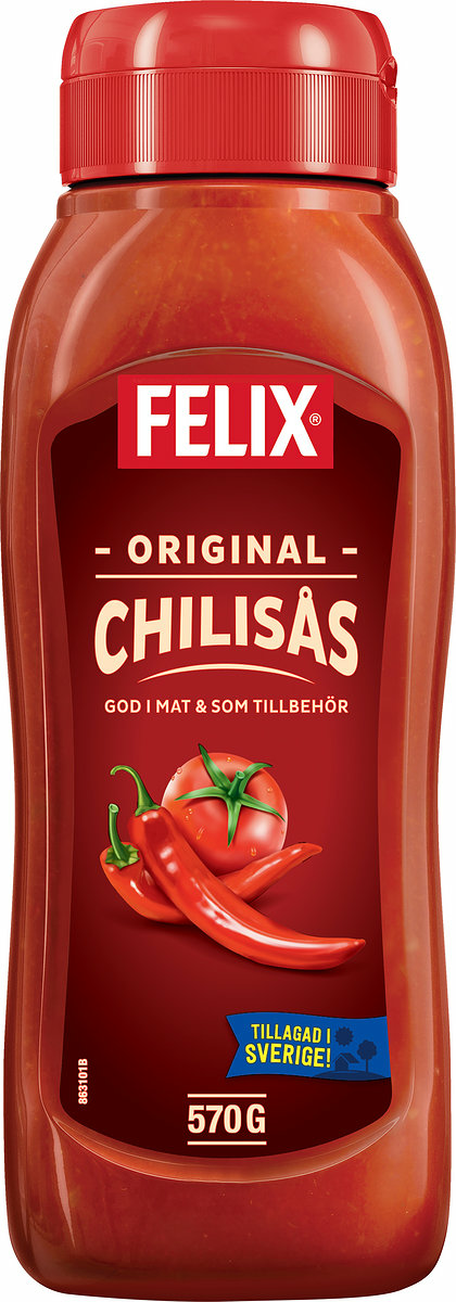 Felix Chilisås är tillagad i Blekinge av noggrant utvalda, solmogna tomater och innehåller inte konserveringsmedel.