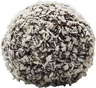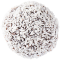 Stor lyxig och handrullad chokladbollar med smak av mocka och täckt med kokos.