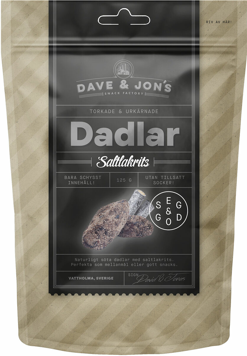 Torkade dadlar, salmiak, lakritspulver 1,5%, vegetabilisk olja (kokos, shea). KAN INNEHÅLLA ENSTAKA KÄRNOR ELLER KÄRNRESTER. Kan innehålla spår av: NÖTTER, JORDNÖTTER, MJÖLK, VETE och SOJA.