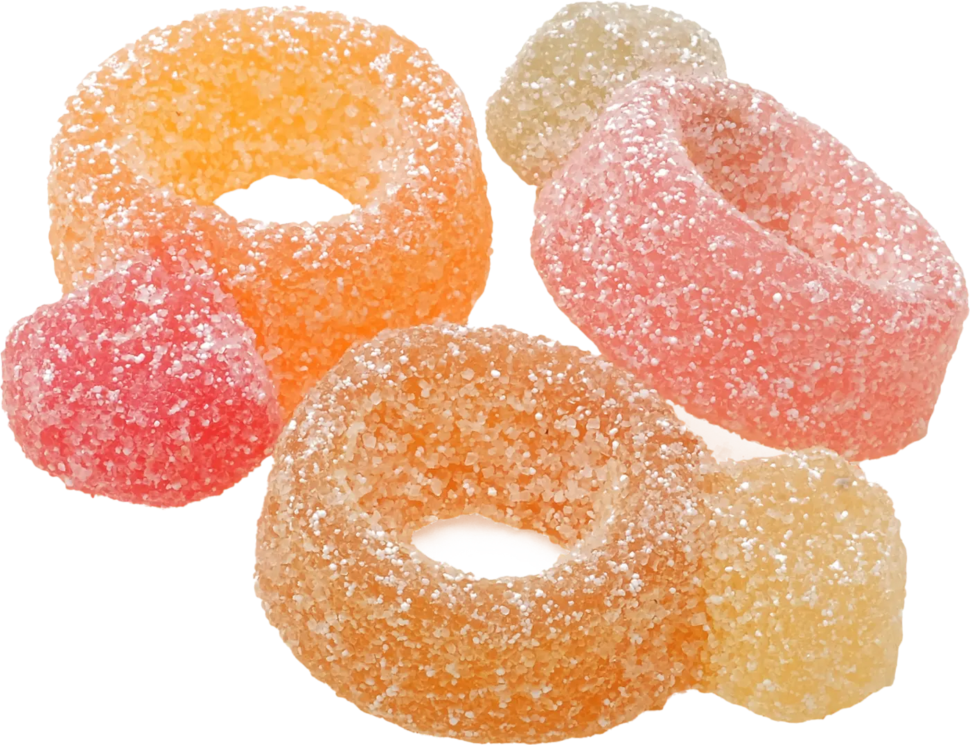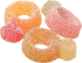 Sursockrad gelé med smak av cola/bubbelgum/peach