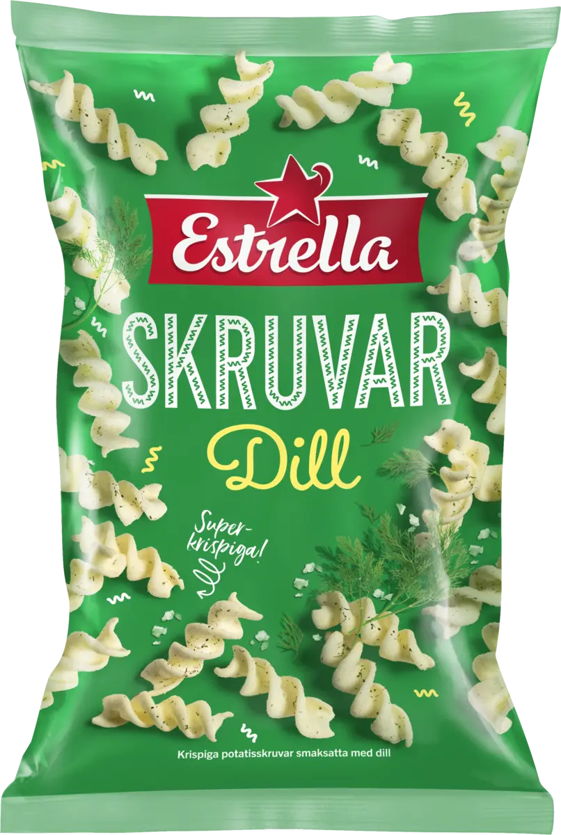 Dillskruvar är krispiga potatisskruvar som bakas, torkas och friteras för att uppnå en perfekt form och krisp. Dillkryddan blir sedan pricken över i:et och skapar en smakupplevelse utöver det vanliga. Mjölkfria och veganvänliga.