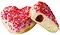 VETEMJÖL, fyllning med hallonsmak 18% socker, vatten, äpplen, hallonpuré från koncentrerad puré 10%, modifierad stärkelse, förtjockningsmedel E440, surhetsreglerande medel (E330, E331), naturlig arom (hallon), koncentrat av morot, koncentrat av aronia, koncentrat av druvor, konsistensmedel E333, vatten, palmfett, rosa topping 10% socker, vegetabiliska fetter (palmkärna, palm), kokosolja, LAKTOSPULVER (MJÖLK), solrosolja, koncentrat av rödbeta, koncentrat av rädisa, koncentrat av vinbär, koncentrat av äpple, emulgeringsmedel E322, naturlig arom (jordgubbe), rött strössel 3% socker, extruderat spannmål (rismjöl, VETEMJÖL, socker, maltextrakt av KORN, salt), vegetabiliska fetter (palmkärna, palm), juice koncentrat från rödbeta, kakaosmör, ytbehandlingsmedel (E414, E904), färgämne paprika extrakt, rapsolja, jäst, druvsocker, socker, SOJAMJÖL, VASSLEPULVER (MJÖLK), VETESTÄRKELSE, bakpulver (E450, E500), salt, ÄGGVITEPULVER, emulgeringsmedel (E471, E481, E472e), SKUMMJÖLKSPULVER, stabiliseringsmedel (E412, E466, E415), ÄGGPULVER, färgämne E160a, mjölbehandlingsmedel E300, arom. Kan innehålla spår av jordnöt, hasselnöt, pistage, mandel och valnöt.
