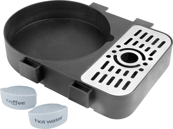 1 st markör för kaffe (coffee) och 1 st för varmt vatten (hot water).