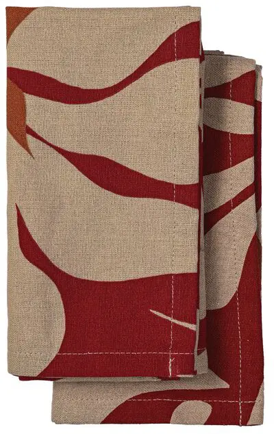 Använd dem i köket eller som dekorativa underlägg på bordet för en ombonad känsla. Det rödblommiga mönstret finns även som duk och shoppingpåse. Säljs i 2-pack.
