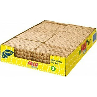 Wasa Knäckebröd Falu Råg-rut är ett klassiskt rågknäcke som passar vid frukostbufféer och måltidsserveringar. Med Wasa Falu Råg-rut storhushållsbricka räcker fullkornsknäckebrödet längre. Detta knäckebröd med kuddar är bakat av fullkornsrågmjöl och är rikt på fiber. Kuddarna formar perfekta rader som gör det lätt att bryta brödet i lagom bitar för att ha som frukostflingor eller i soppan. Precis lika enkelt är det att bryta rågknäckebrödet i mitten för två knäckemackor. Detta spröda knäcke består till 100% av fullkorn och är 100% klimatkompenserat.