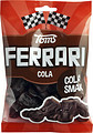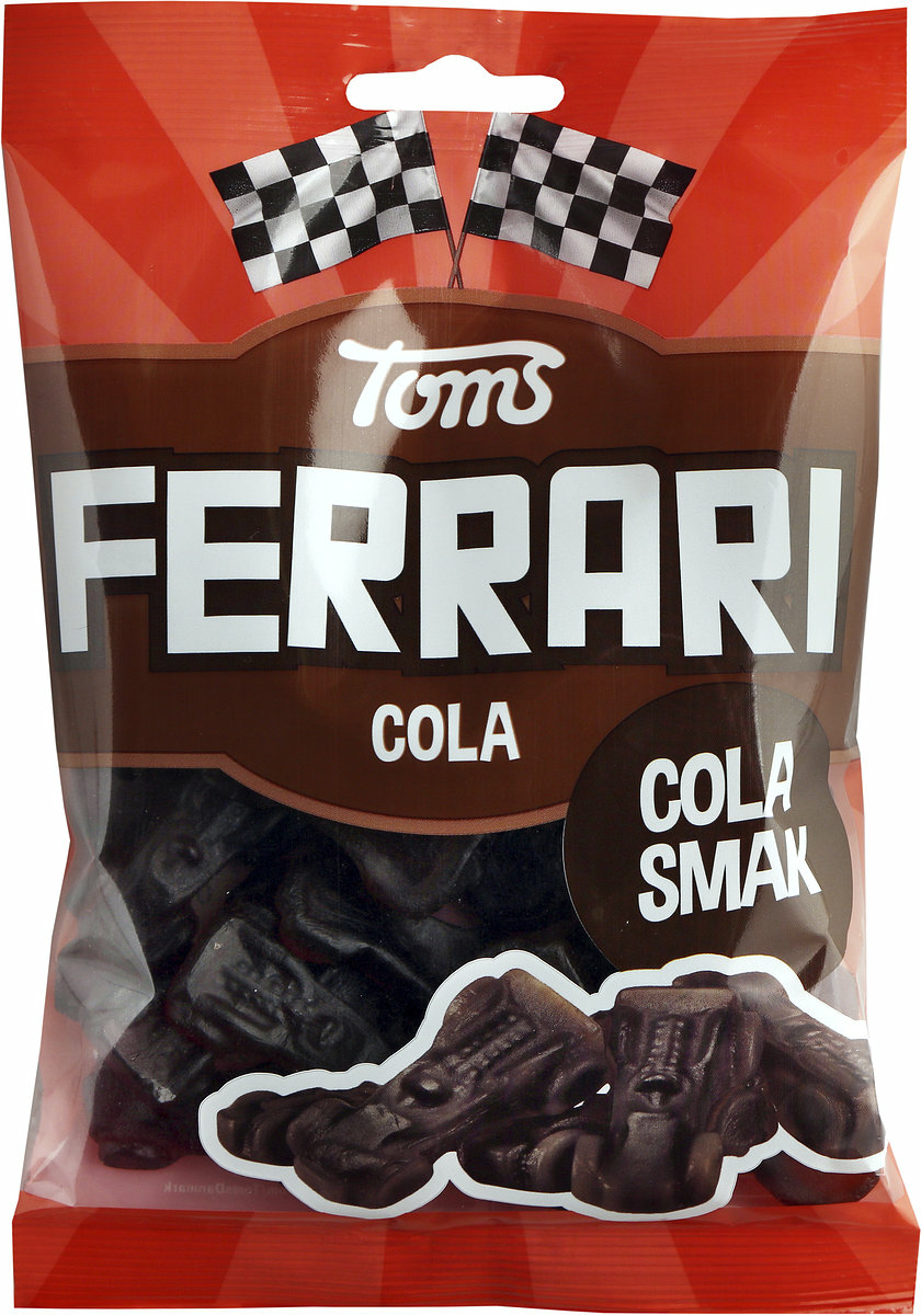 Små ferraribilar av vingummi med colasmak. Innehåller ingen palmolja. Innehåller inga artificiella färgämnen.