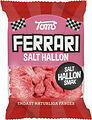 Små ferraribilar av saltkanderat vingummi med hallonsmak. Utan palmolja. Innehåller inga artificiella färgämnen.