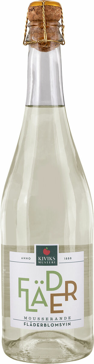 Kiviks Musteris Fläderblomsvin 75 cl 0,5% vol. Ett halvtorrt alkoholsvagt mousserande fruktvin med smak och doft av fläderblom. Serveras väl kylt som aperitif. Tillverkas i vårt vinhus på Österlen.