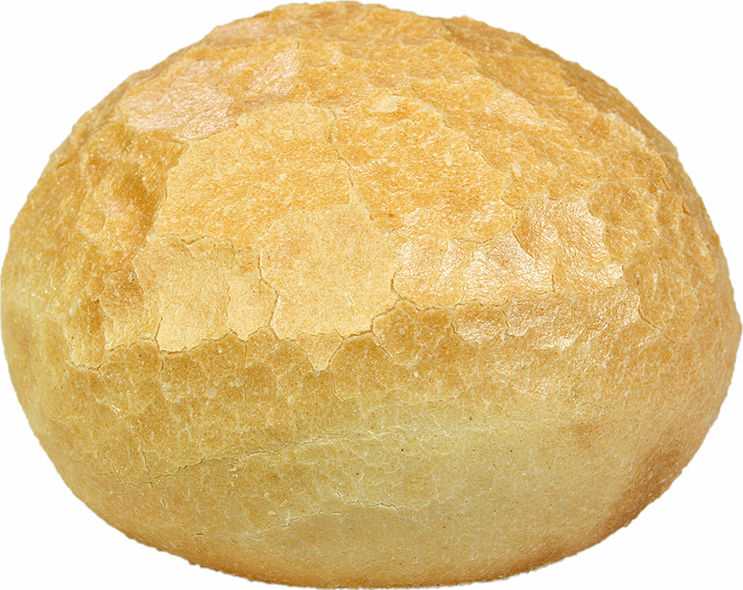 Rund, ljus, slät fralla bakad med vetemjöl.