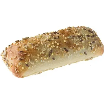 VVETEMJÖL (innehåller askorbinsyra, malt av KORN), surdeg/torkad surdeg av VETE/bovete, vatten, fröblandning 3 % (solroskärnor, SESAMFRÖ, bruna-/gula linfrö, hirsfrö), solrosfrö 2 %, havssalt, jäst, VETEGLUTEN, guarkärnmjöl. Kan innehålla spår av mjölk, ägg, senap, soja och laktos.