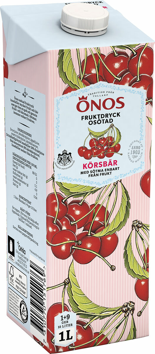 Körsbär Osötad Fruktdryck är härligt bärig med sötma från enbart frukten. Tillverkad i Sverige.