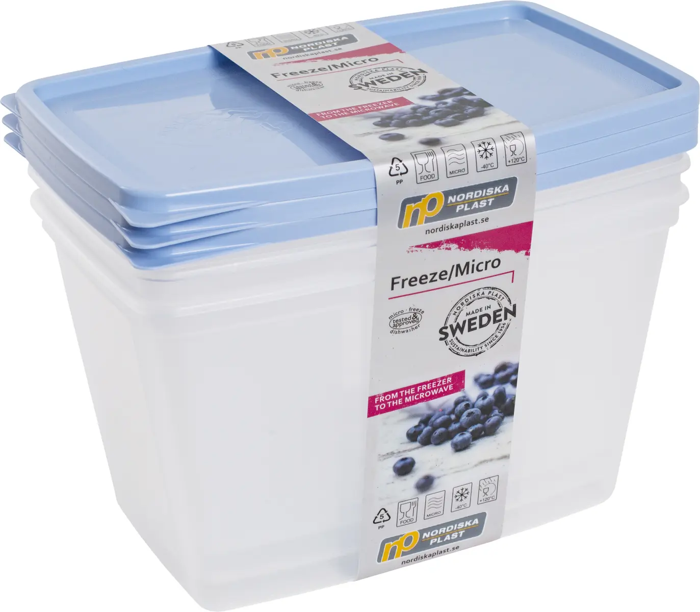 Praktisk och klassisk förvaringsserie i transparent Poly- propenplast, 3-pack. Enkel att använda med ett mjukt lock som är lätt att öppna. Burkarna tål även att köras i Mikrovågsugn även om de tas direkt från frysen. Det transparenta materialet gör det enkelt att se vad som är inuti. Lock och burkar staplas enkelt vid förvaring i köksskåp. Livsmedelsgodkänd, klarar -40°C till +120°C.