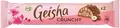 Under Geisha Crunchys sammetslena mjölkchoklad gömmer sig två olika fyllningar - hasselnötsnougat samt frasiga rispuffar. Denna stycksak med 2 bitar stillar garanterat även ett större sötsug. Och bäst av allt: alla Fazers goda chokladprodukter tillverkas av 100 % ansvarsfullt producerad kakao. Ta en stund för dig själv, fokusera på det goda och njut av den krispiga chokladstycksaken.