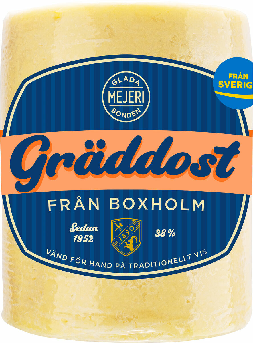 Gräddost Lagrad 3-5 mån, ca 500 gr, 38%. Den klassiska gräddosten har producerats i Boxholm på samma traditionella och hantverksmässiga vis sedan 1952 – faktiskt vis sedan 1952 – faktiskt först i Sverige i kommersiell skala. Den mjuka och härliga gräddostsmaken är således historisk. Ystad av svensk mjölk från glada bönder vänd för hand på traditionellt vis.