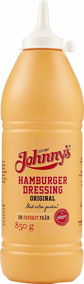 Johnnys Hamburgerdressing är en riktig kvalitetsdressing med extra mycket gurka. Smaken har en markerad och läskande syra med fin senapshetta. Johnnys hamburgerdressing tillverkas lokalt i vår fabrik i Eslöv. Passar framförallt till korv och hamburgare eller som sås till halstrad färsk fisk.