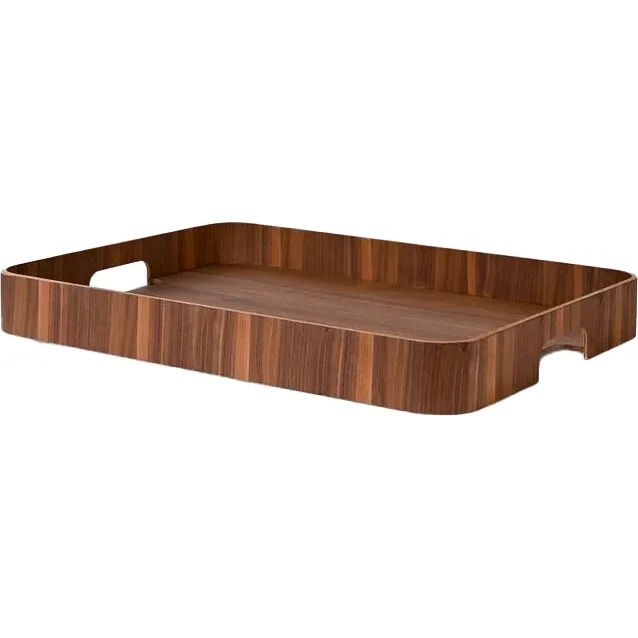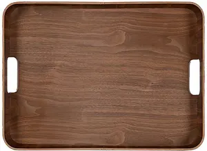 Hanna bricka är tillverkad av poppelträ och valnöt från certifierat skogsbruk – ett hållbart och vackert naturmaterial som passar i alla hem. Den stora, rektangulära formen med mjukt rundade kanter och praktiska handtag ger både stabilitet och generöst utrymme för servering eller dekoration.