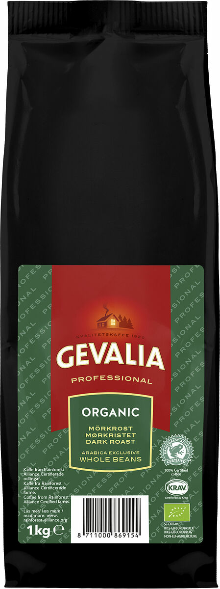 GEVALIAS hela bönor har samma goda egenskaper som Gevalias övriga sortiment, men dessutom med den speciella känsla, smak och arom det ger att få servera kaffe av nymalda bönor. Bönorna kommer från Rainforest Alliance-certifierade gårdar.