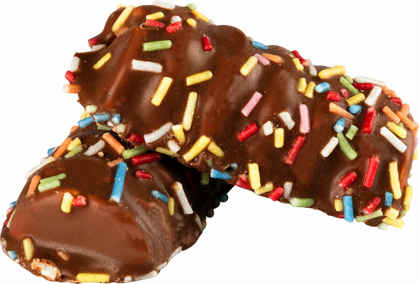Skum med jordgubbssmak överdragen med ljus nontemp och frukt strössel.