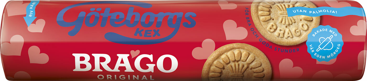 Brago är svenska folkets vardagsfavorit bland kexen. Spröda mördegskex med mild vaniljsmak - en klassiker som funnits sedan 1953. Bragokex finns också som bondgårds-, siffer- och bokstavskex. Perfekta kex för hela familjen. Produkten är vegansk.