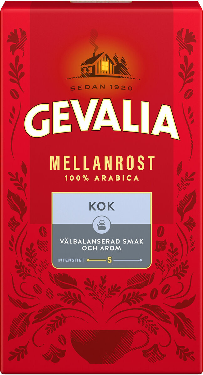 Gevalia Kok Mellanrost är ett grövre malet kaffe som på bästa sätt framkallar smak och arom när du kokar ditt kaffe. Det är en perfekt blandning av utvalda bönor från Östafrika och Sydamerika, som ger ett välbalanserat kaffe med härlig arom och en lätt syrlig eftersmak.
