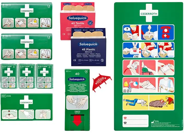 • Ett komplett refillpaket till Cederroth Första-hjälpen-Tavla artnr: 190900