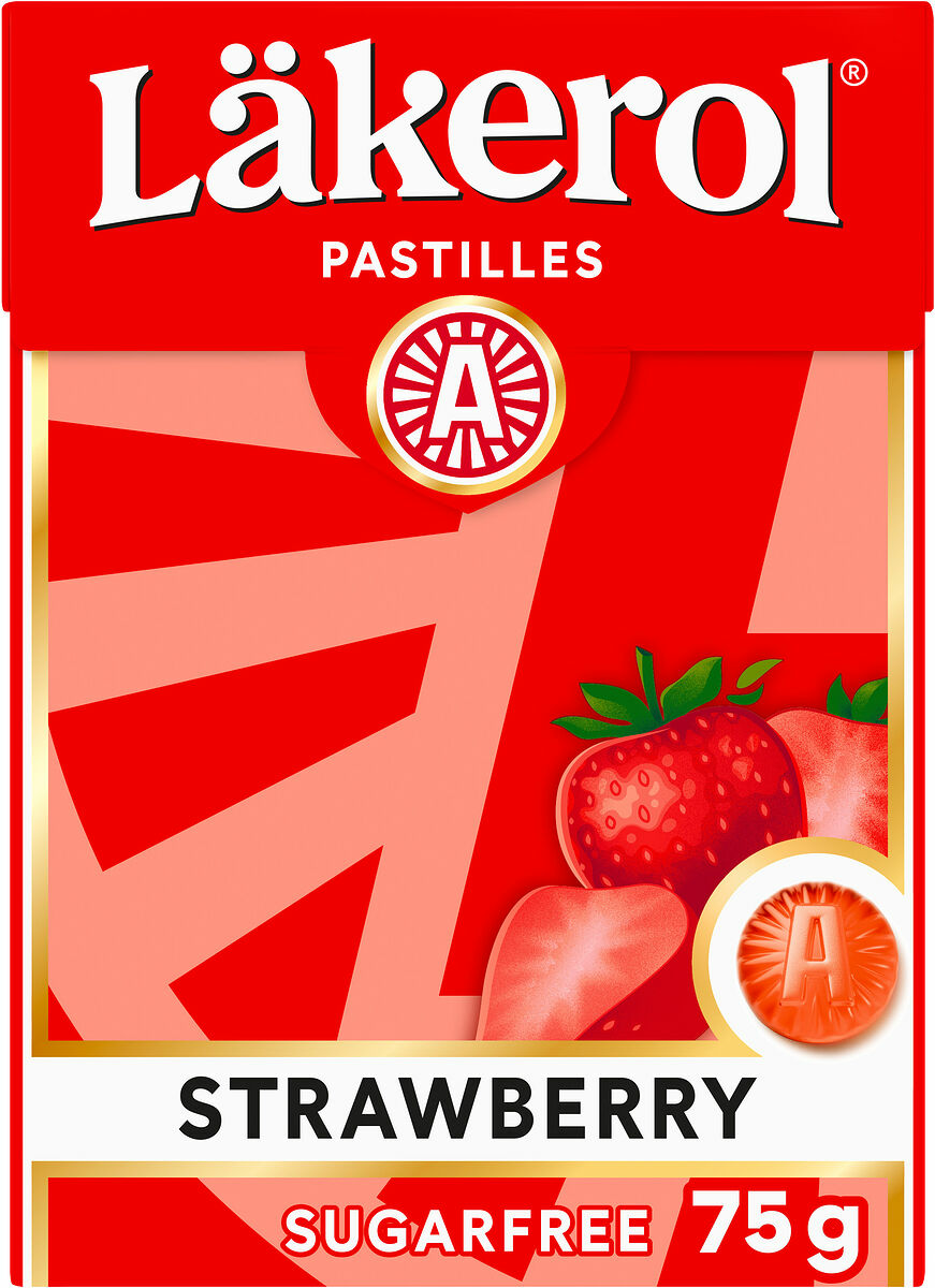 Läkerol Strawberry är en fruktig, sockerfri och vegansk pastill som fräschar upp andedräkten och lämnar en god smak i munnen. Söt och fräsch jordgubb i en ask full med smak av sommar!