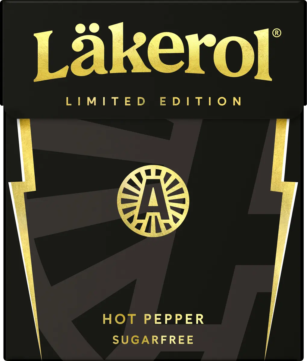 Läkerol Classic Hot Pepper är vår hetaste pastill någonsin, med en intensiv kombination av lakrits och het chilipeppar. Den lilla och smidiga asken följer lätt med vart som helst och erbjuder ett sockerfritt alternativ för sötsuget och piggar samtidigt upp din dag.
