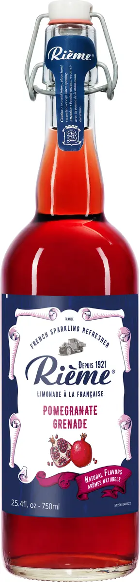 Mousserande och uppfriskande lemonad med oförändrat recept i nästan ett sekel från Rième Boissons. Endast med rena tillsatser. Här smaksatt med granatäpple.