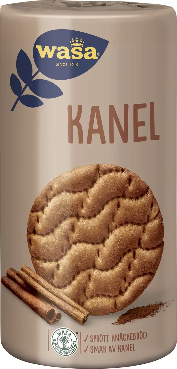 Wasa Knäckebröd Runda Kanel är ett litet runt knäckebröd med en ljuvlig smak. Bakat med kanel blir det här veteknäcket något mittemellan en vanlig knäckemacka och ett sötare mellanmål. Wasa kanelknäcke ger dig möjligheten att skapa helt nya smakkombinationer med olika intressanta pålägg. Bryt ditt hårdbröd i bitar och använd som frukostflingor, eller avnjut ditt knäcke med kanel som mellanmål ihop med frukt. Wasas runda kanelknäckebröd bakat på vetemjöl är 100% klimatkompenserat.