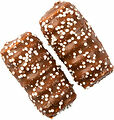 Skum med kolasmak överdragen med ljus nontemp och vitt strössel.
