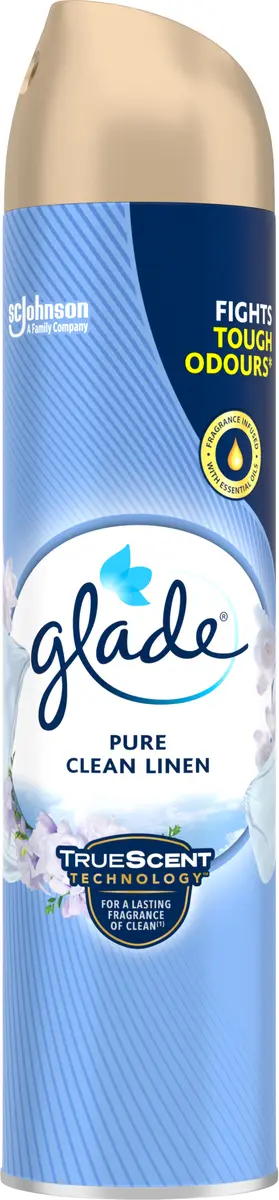 Glade luftfräschare Pure Clean Linen fyller ditt rum med toner av liljekonvalj, krispig frisk luft och nytvättad tvätt. Glade använder TrueScent Technology™, en egenutvecklad blandning av ingredienser som ger en varaktig känsla av renhet. Få en omedelbar fräsch doft, designad för att bekämpa tuffa lukter.