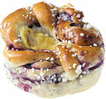 VETEMJÖL, vaniljkräm (vatten, socker, KÄRNMJÖLKSPULVER, vegetabilisk fett (kokos), modifierad stärkelse E1442, konserveringsmedel E202, salt, vaniljarom (arom, vaniljextrakt, naturlig arom(vanilj),färgämne (E160a, E101)), socker, vatten, vetebrödsmargarin (vegetabilisk olja (palm SG, raps), vatten, emulgeringsmedel E471, salt, naturlig arom, surhetsreglerande medel E330), jäst, modifierad stärkelse, MJÖLKPROTEINER, äpplebitar, kardemumma, blåbär 0,53%, salt, surhetsreglerande medel E330, naturlig arom (blåbär), surhetsreglerande medel E450, emulgeringsmedel (E471, E472e), surhetsreglerande medel E500, rapsolja, konserveringsmedel E202, LAKTOS, mjölbehandlingsmedel E300, naturlig arom (blåbär). Kan innehålla spår av ägg, soja, mandel, hasselnöt, valnöt, sesamfrö.