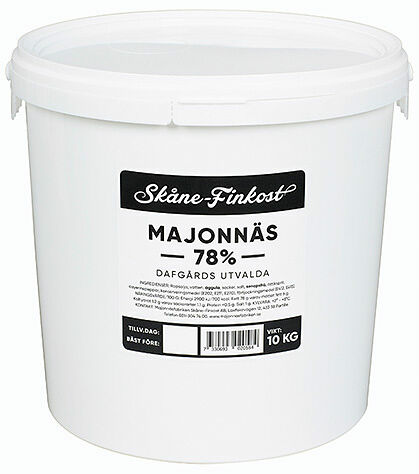 Rapsolja, vatten, ÄGGULA, socker, salt, SENAPSFRÖ, ättiksprit, cayennepeppar, konserveringsmedel (E202, E211, E270), förtjockningsmedel (E412, E415).