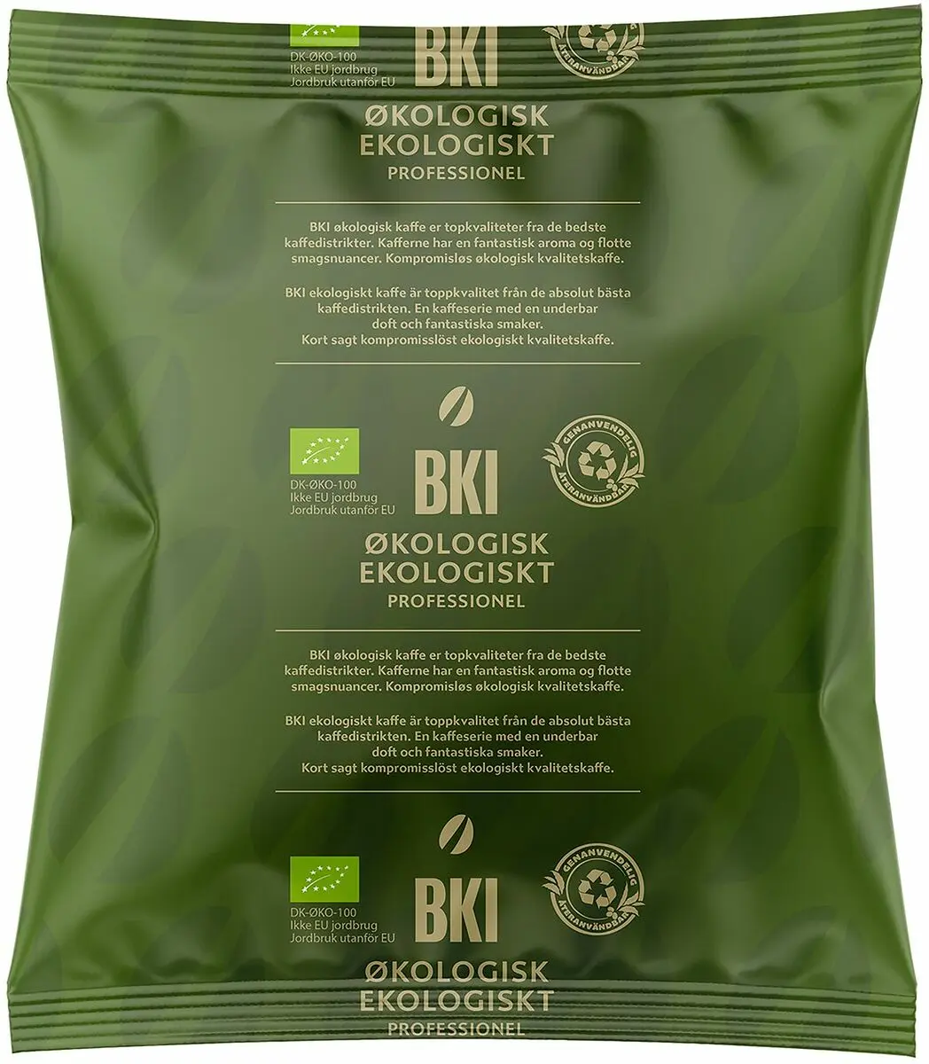 BKI certifierat kaffe lanserades hos BKI i början av 1990-talet med ekologiskt kaffe. Vi fortsätter sätta höga krav på våra certifierade kaffesorter. Våra kaffepåsar är gjorda av ett 2-lagers metallfritt PP/PE-folie och kan sorteras som återvinningsbar mjuk plast.