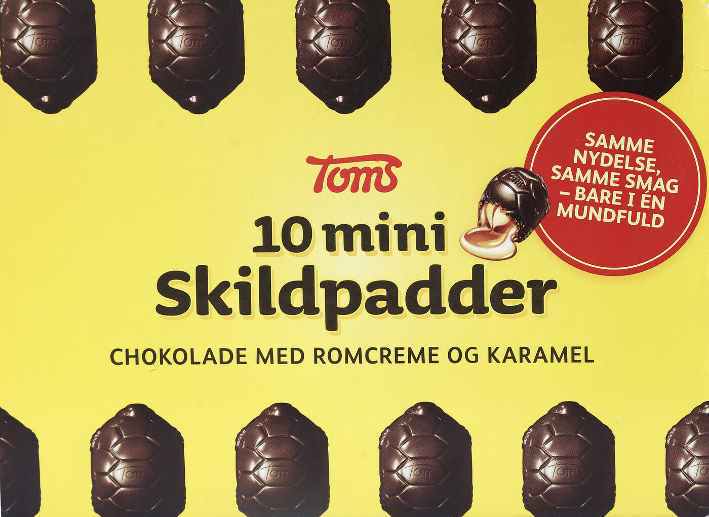 Toms härliga Sköldpadda i miniformat, Mörk choklad fylld med romcreme och karamel.